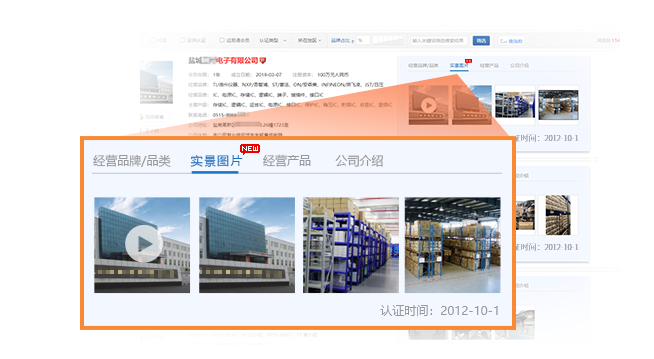 近期更新实体认证信息的企业,【实景图片】选项卡将带 标识,抢眼醒目。
